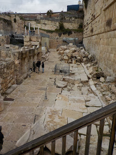 Then we walked to what I think Craig referred to as THE SOUTHERN STEPS. I think it was this area : Southern Wall is a wall at the southern end of the Temple Mount and the former southern side of the Second Temple (also called Herod's Temple) in Jerusalem. It was built during King Herod's expansion of the Temple Mount platform southward on to the Ophel.